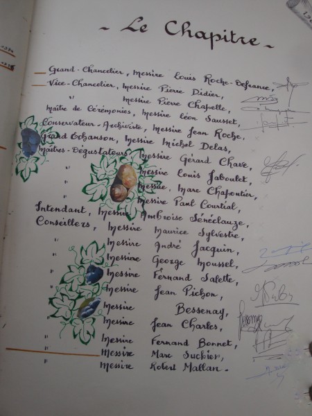 Le CHAPITRE  de la CONFRERIE fût mis en place en l'an de grâce 1965 le 26 mai. La Dive Bouteille de Gaillac porta consentement de parrainage.